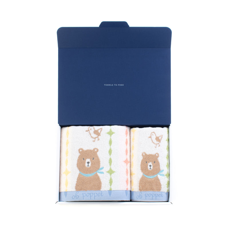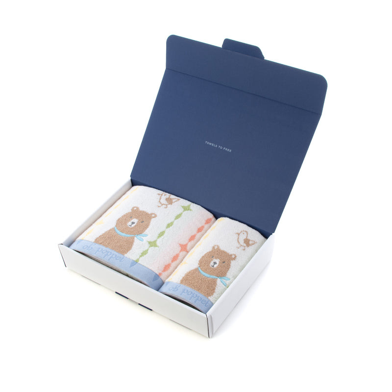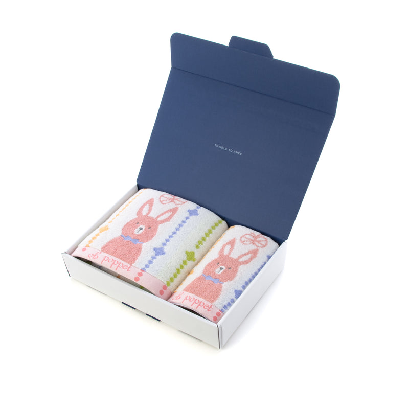 ハートウエルボックス入り-ポペット2-クマ-ネコ-ウサギ-バスタオル-フェイスタオル