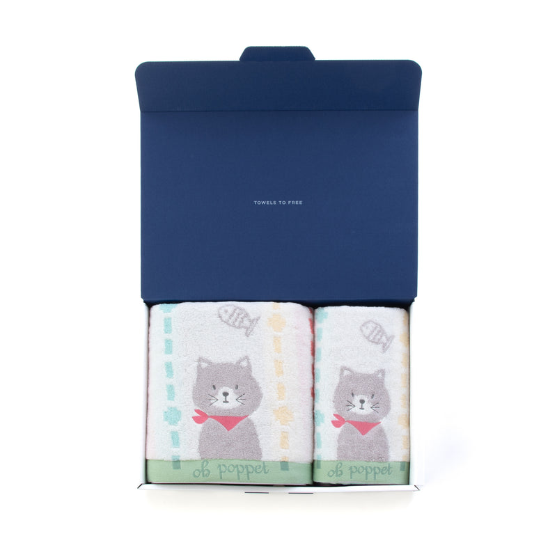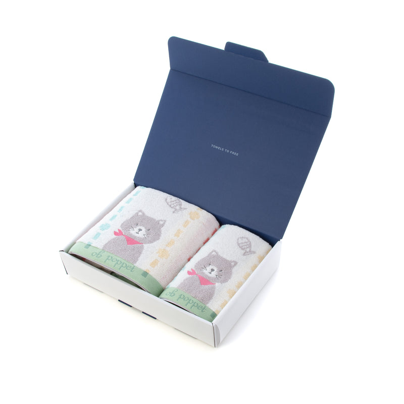 ハートウエルボックス入り ポペット2 クマ・ネコ・ウサギ バスタオル×フェイスタオル