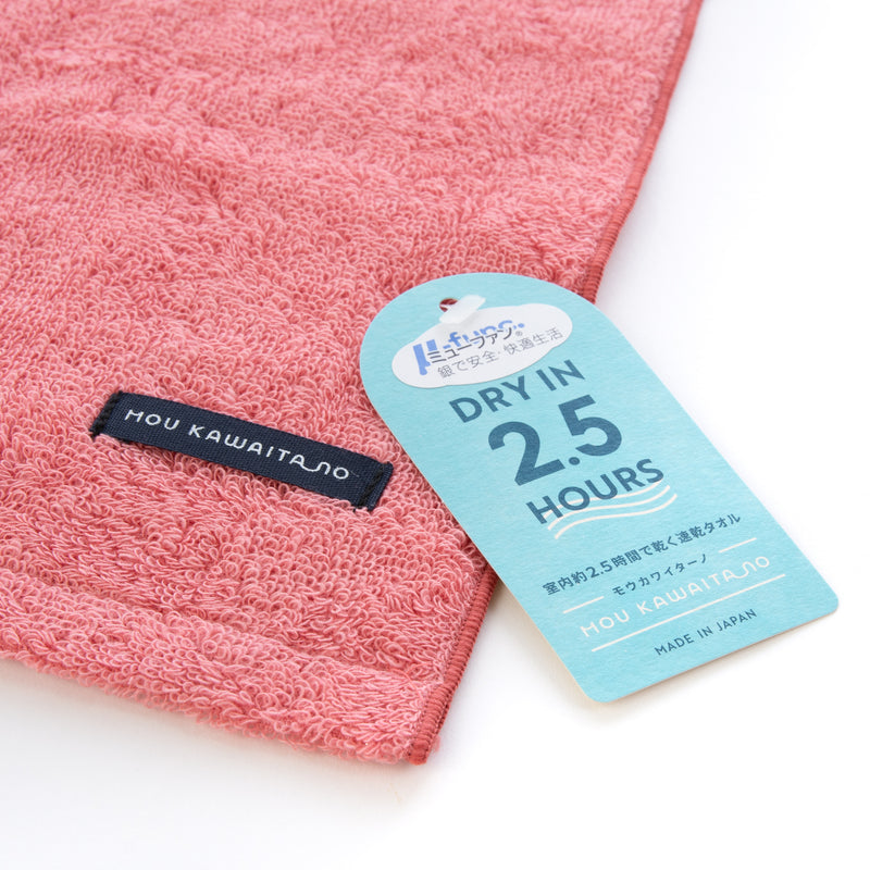 室内干し約2.5時間で乾く速乾性に優れたタオルです。