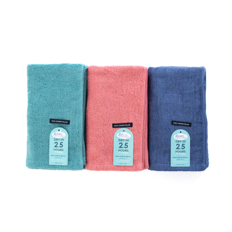 室内干し約2.5時間で乾く速乾性に優れたタオルです。