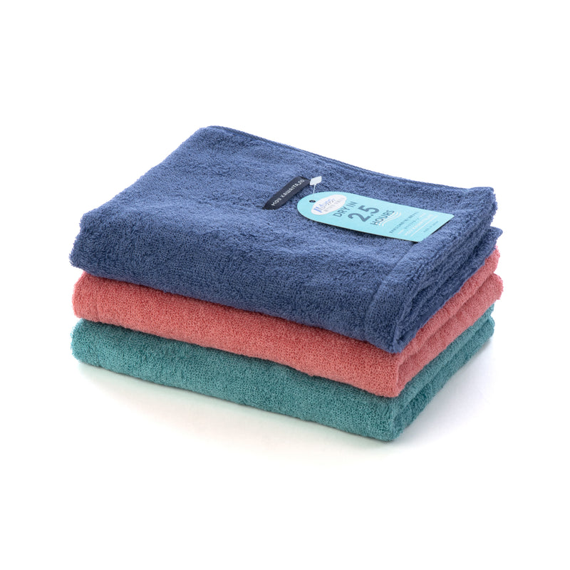 室内干し約2.5時間で乾く速乾性に優れたタオルです。