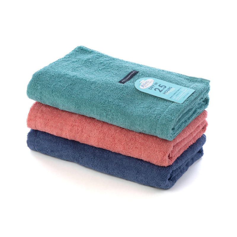 室内干し約2.5時間で乾く速乾性に優れたタオルです。
