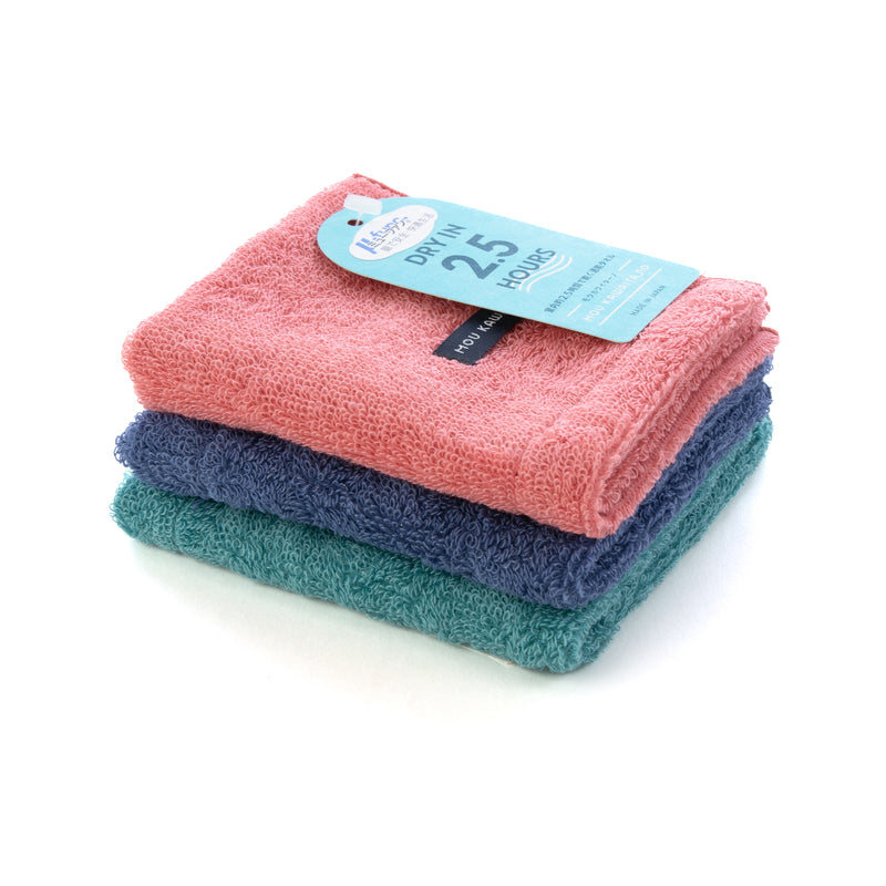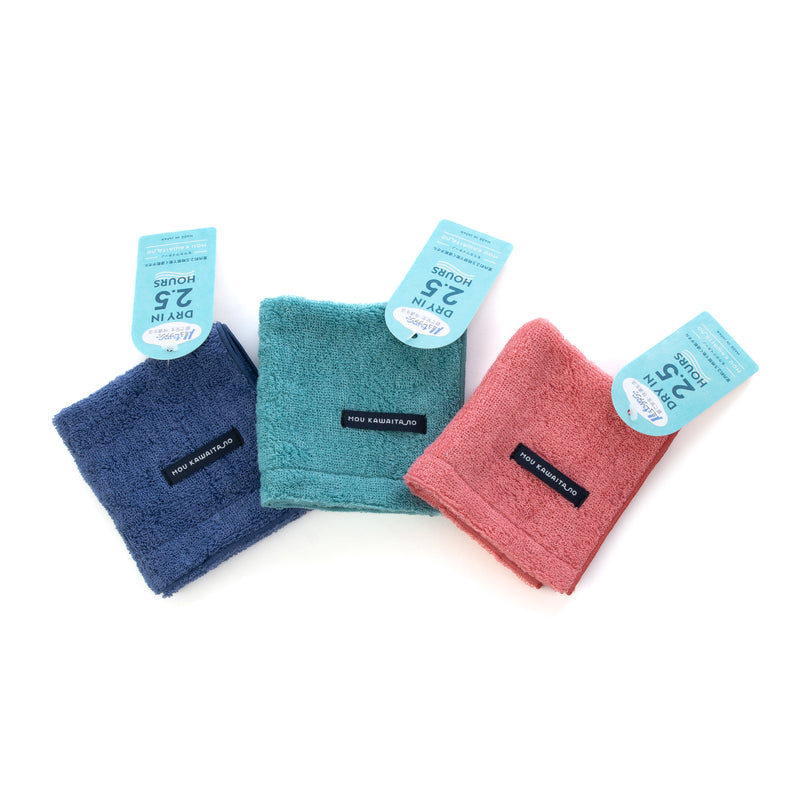 室内干し約2.5時間で乾く速乾性に優れたタオルです。