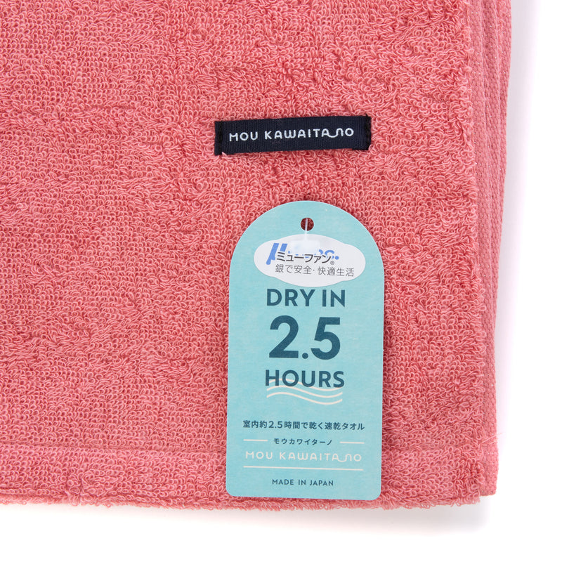室内干し約2.5時間で乾く速乾性に優れたタオルです。